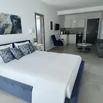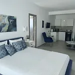 All Blue Suites ferielejlighed i Ampelas byder på gratis parkering, en restaurant og en terasse. Det ligger 5 minutters gang fra Ampelass centrum og der er 10 minutters kørsel til Piperi Strand fra lejlighed.